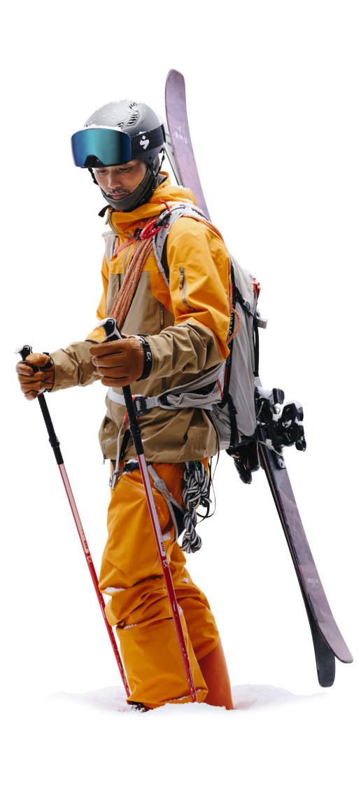 ツーリング専用に設計された、GORE-TEX PROのスキー/スノーボードギア。登りから滑り出しまでを支えるシステム。